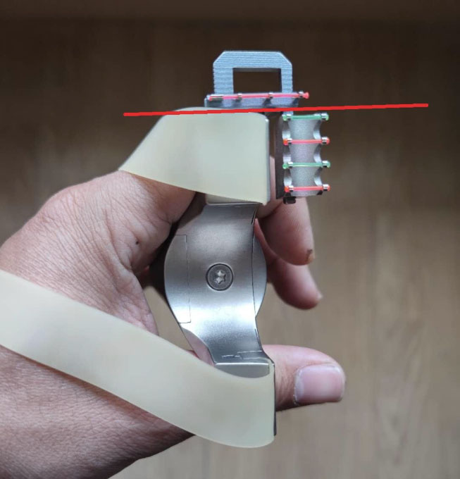 Vị trí trái – phải: Đường ngắm nên nằm ngay phía trên đường nối hai điểm cố định của dây thun trên và dưới.