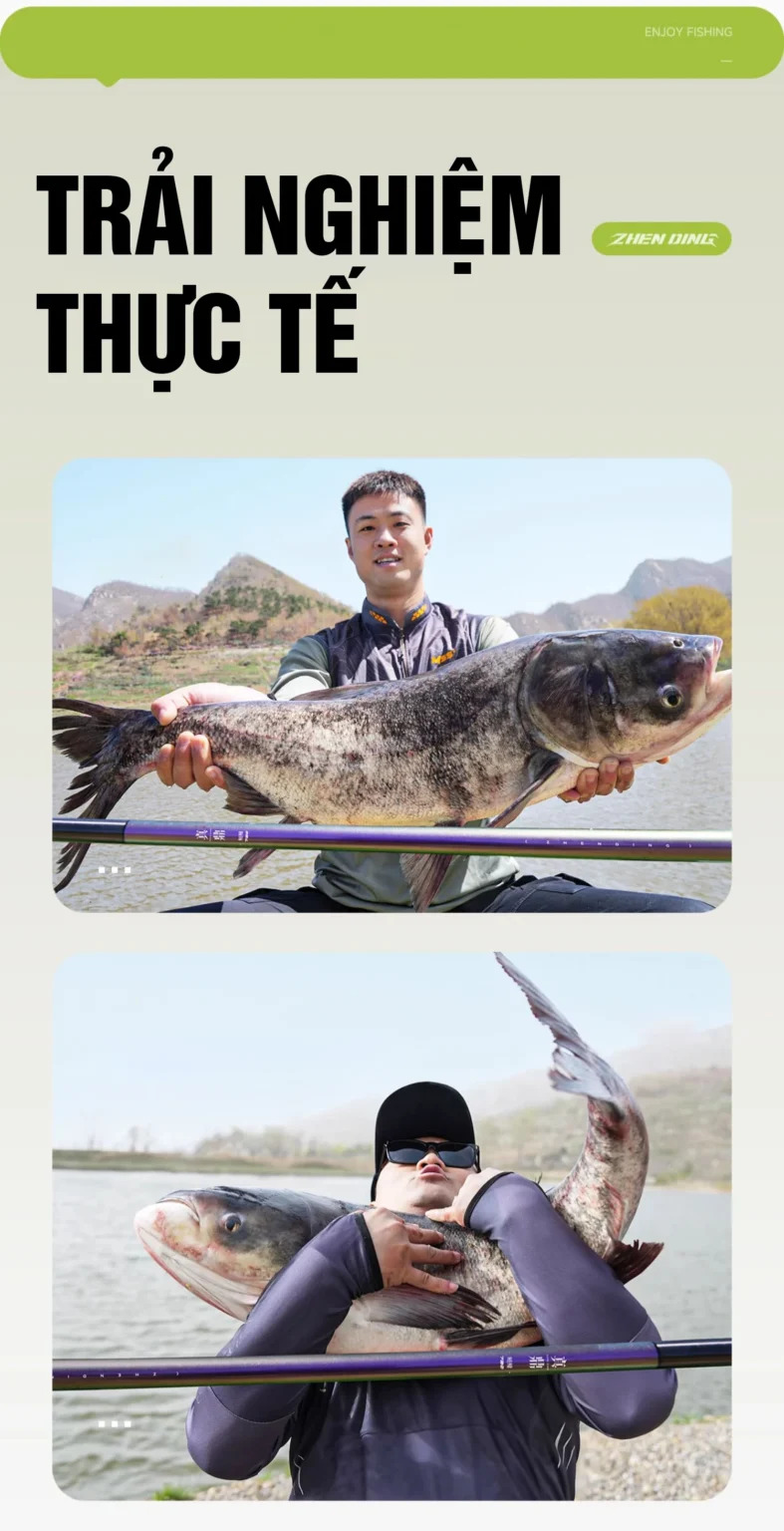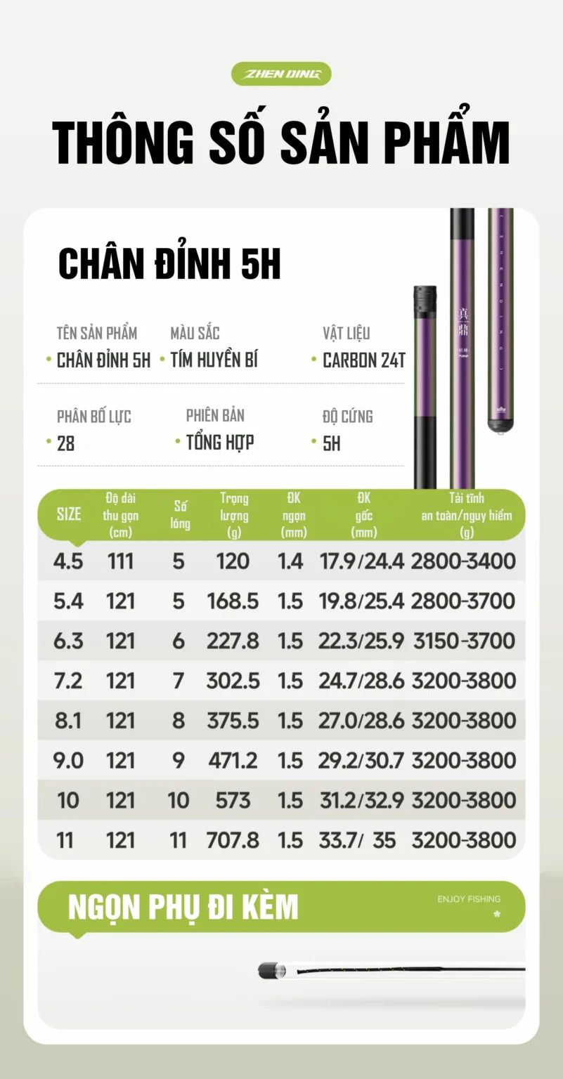 – Chế độ hậu mãi tốt: Mỗi cây cần đều được tặng kèm ngọn phụ và bảo hành thay 2 lóng chính hãng, giúp anh em yên tâm tác chiến.