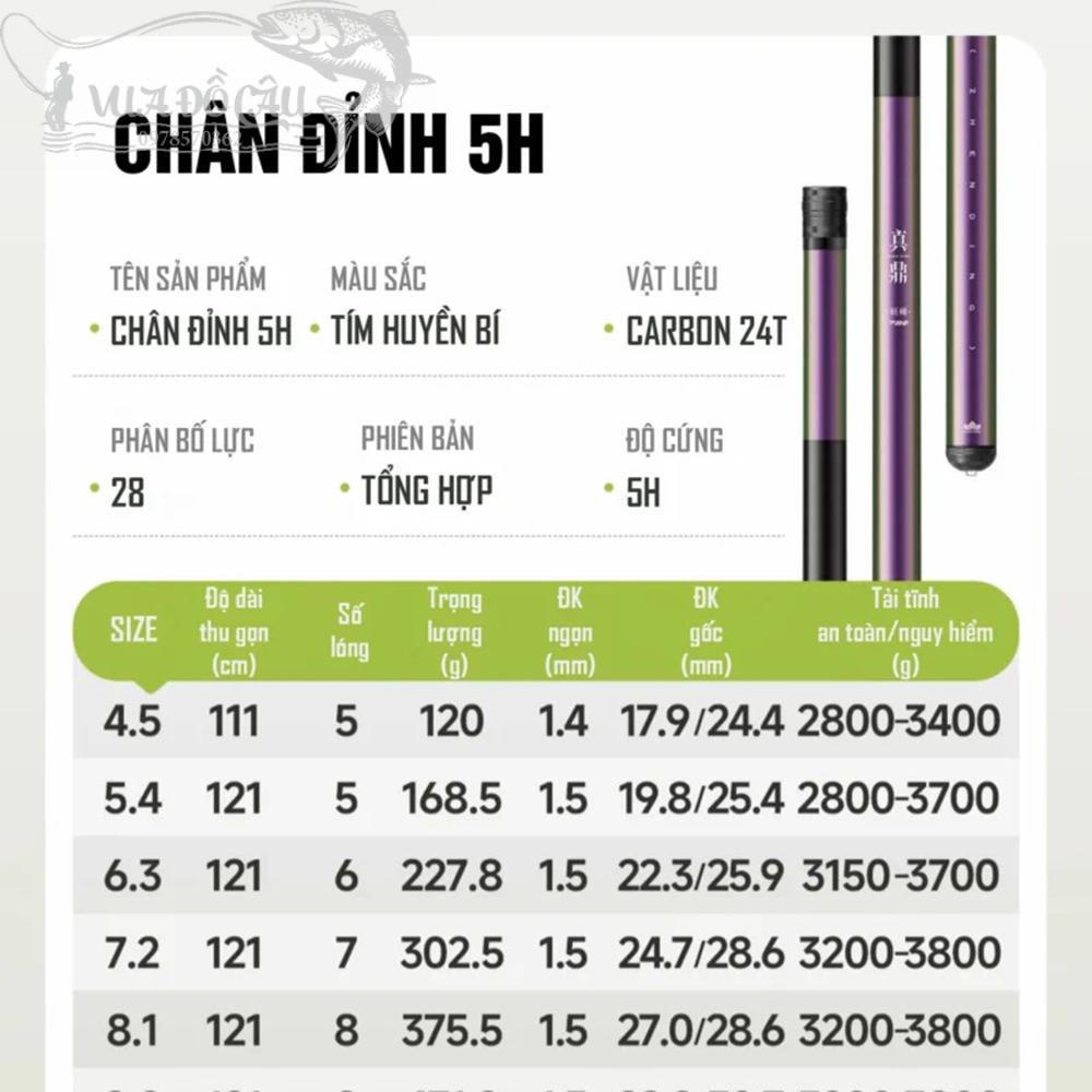 Đừng nhầm lẫn với phiên bản 4H giành cho người thích câu cảm giác, dùng dây trục và dây thẻo nhỏ. Handing Chân Đỉnh 5H mạnh mẽ hơn, uy lực hơn và sẵn sàng cùng anh em chinh phục những nấc thang mới trong bộ môn câu đài.