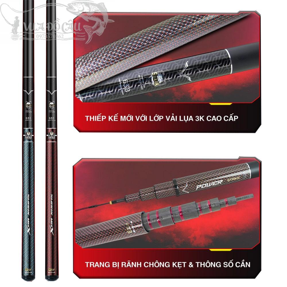 –  8,1m – 6 khúc – Dài 118cm – 326g – Φ gốc 27.2mm – Φ ngọn 1,4mm – Nhấc tĩnh 5500g – Giá bán: 1.500.000đ