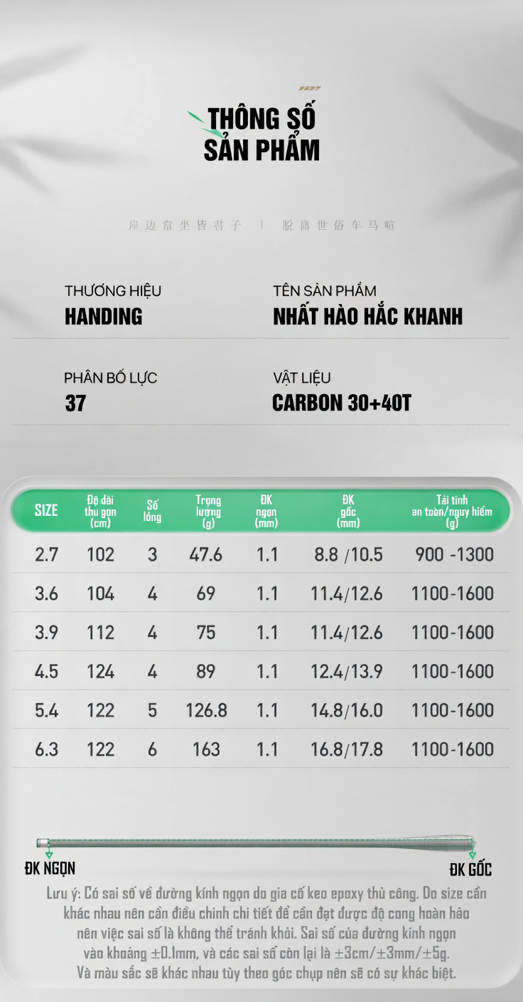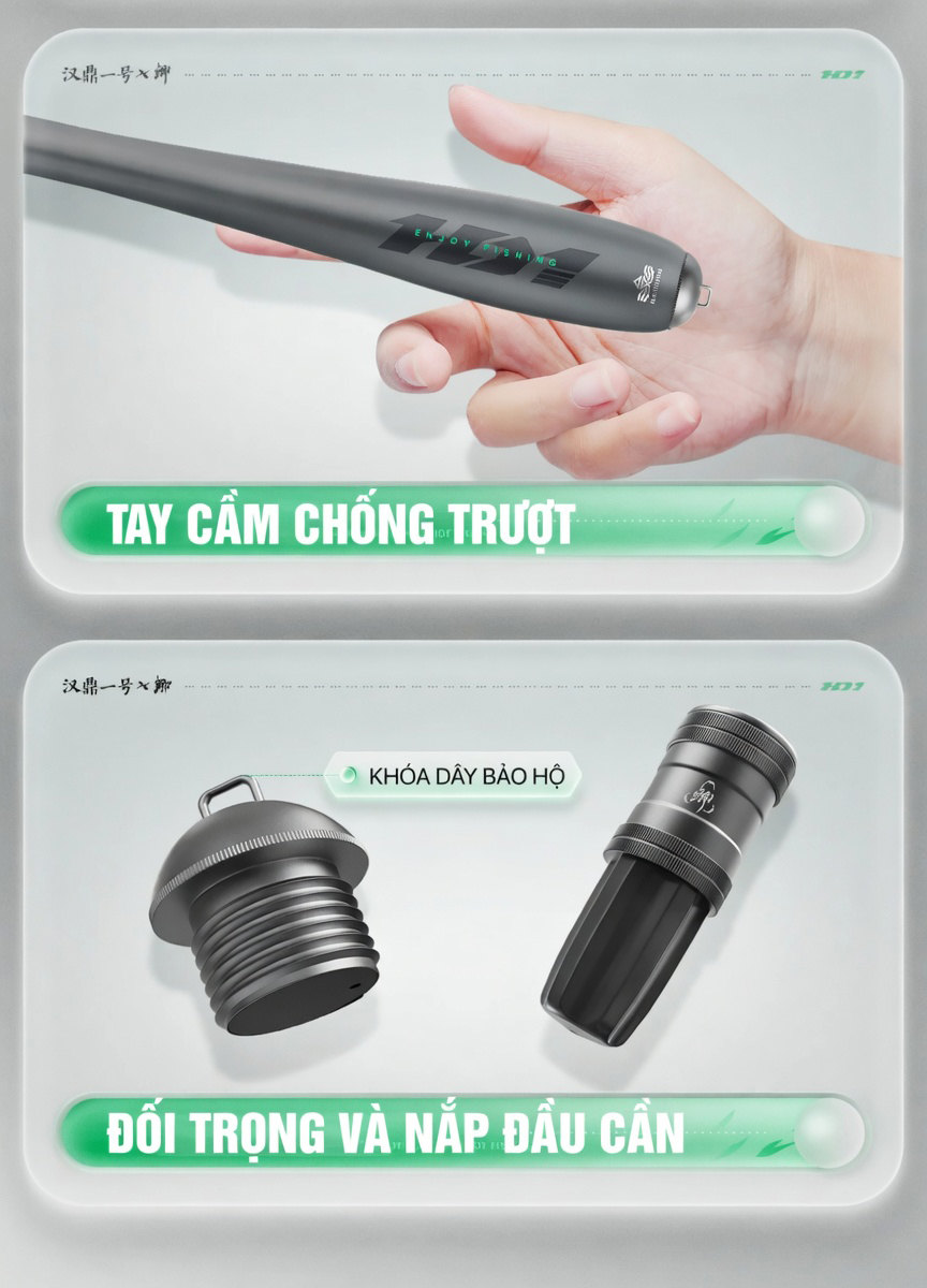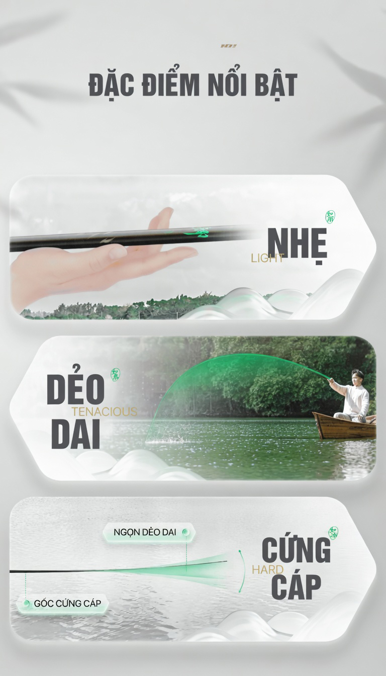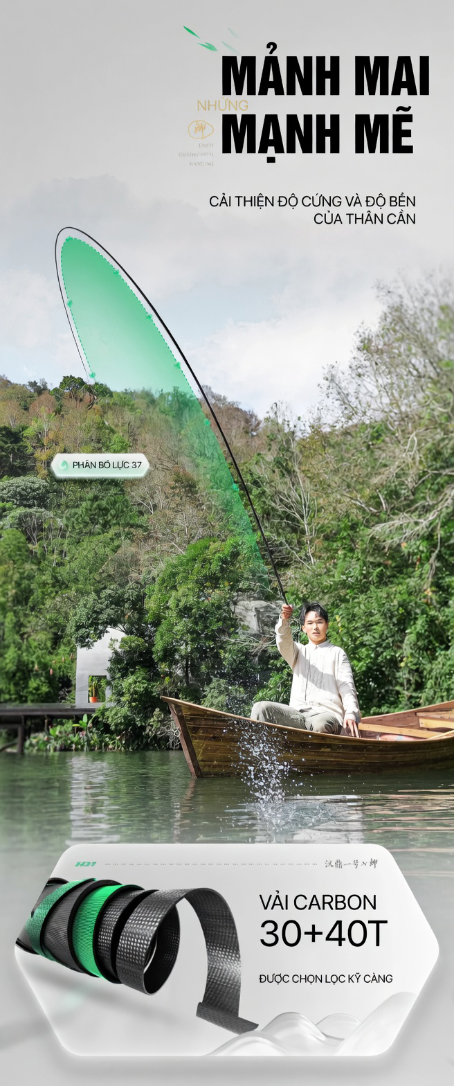 Với các cần thủ chuyên đi “săn diếc” cả ngày, trọng lượng cần là yếu tố sống còn. Bản Cá Diếc của dòng Nhất Hào Hắc Khanh được tối giản trọng lượng đến mức tối đa. Ví dụ, phiên bản 3.6m chỉ nặng vài chục gram, giúp bạn thực hiện hàng trăm cú quăng mồi mà không gây mỏi cổ tay hay vai.