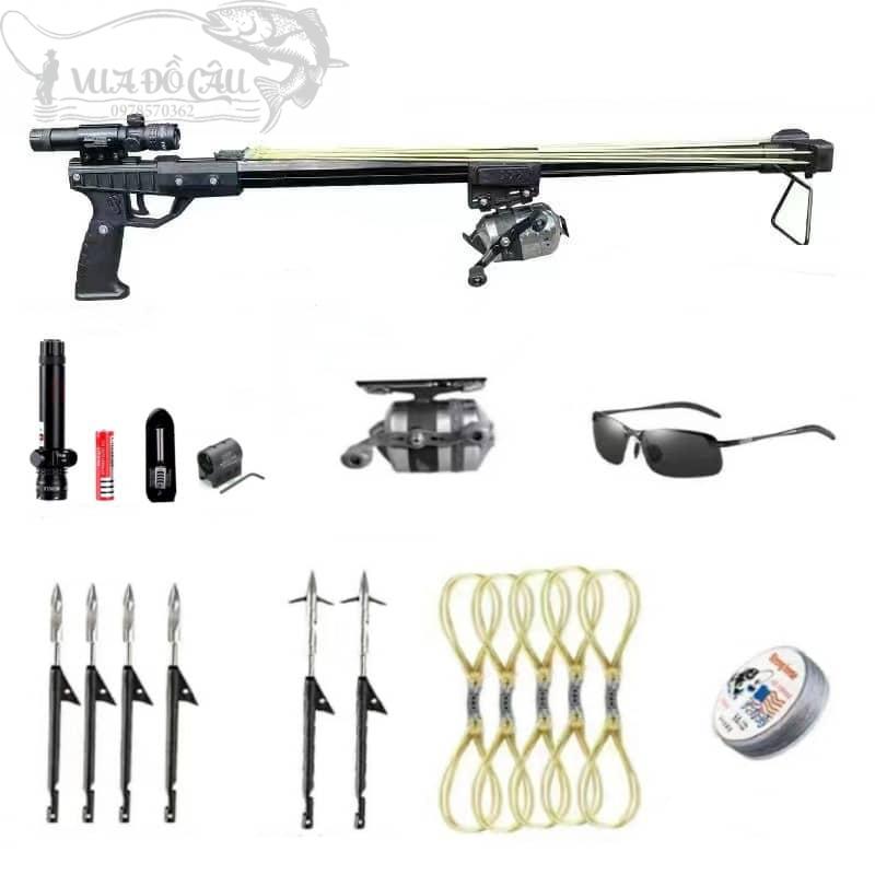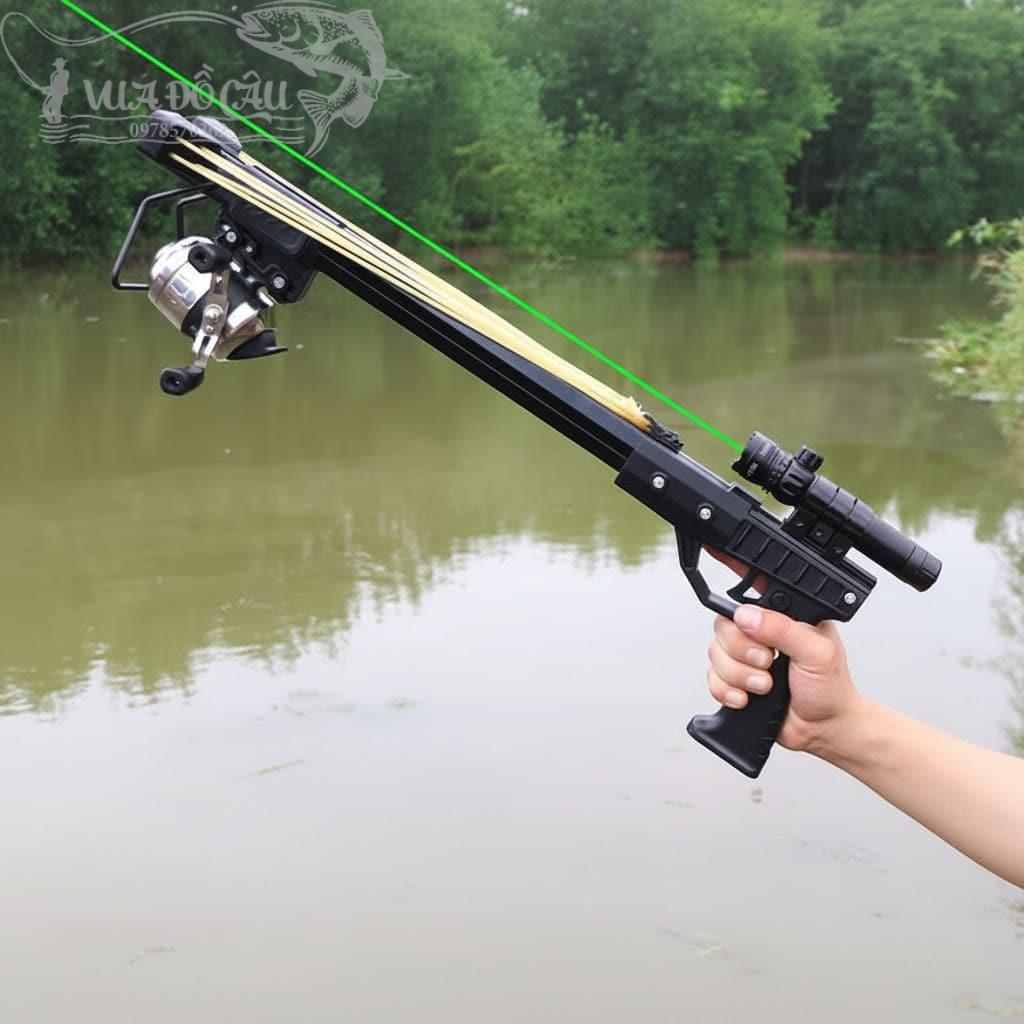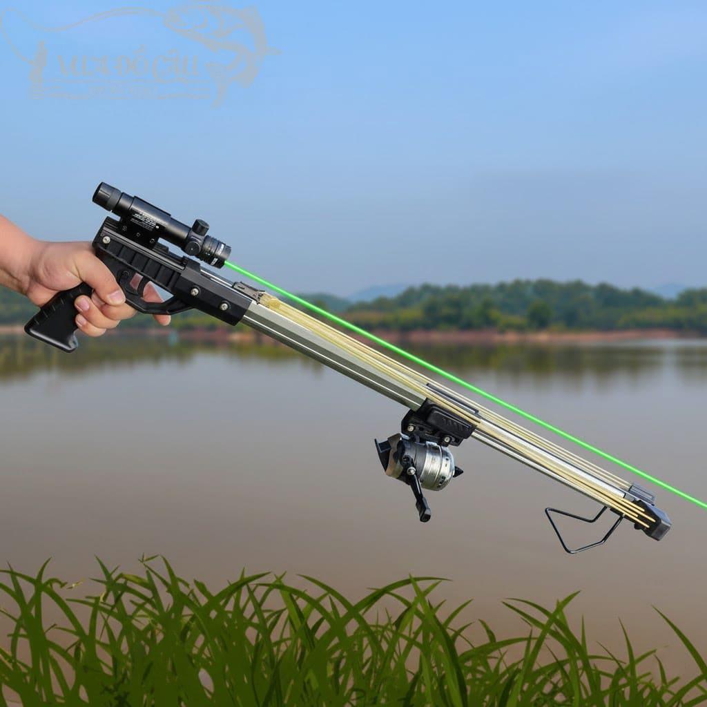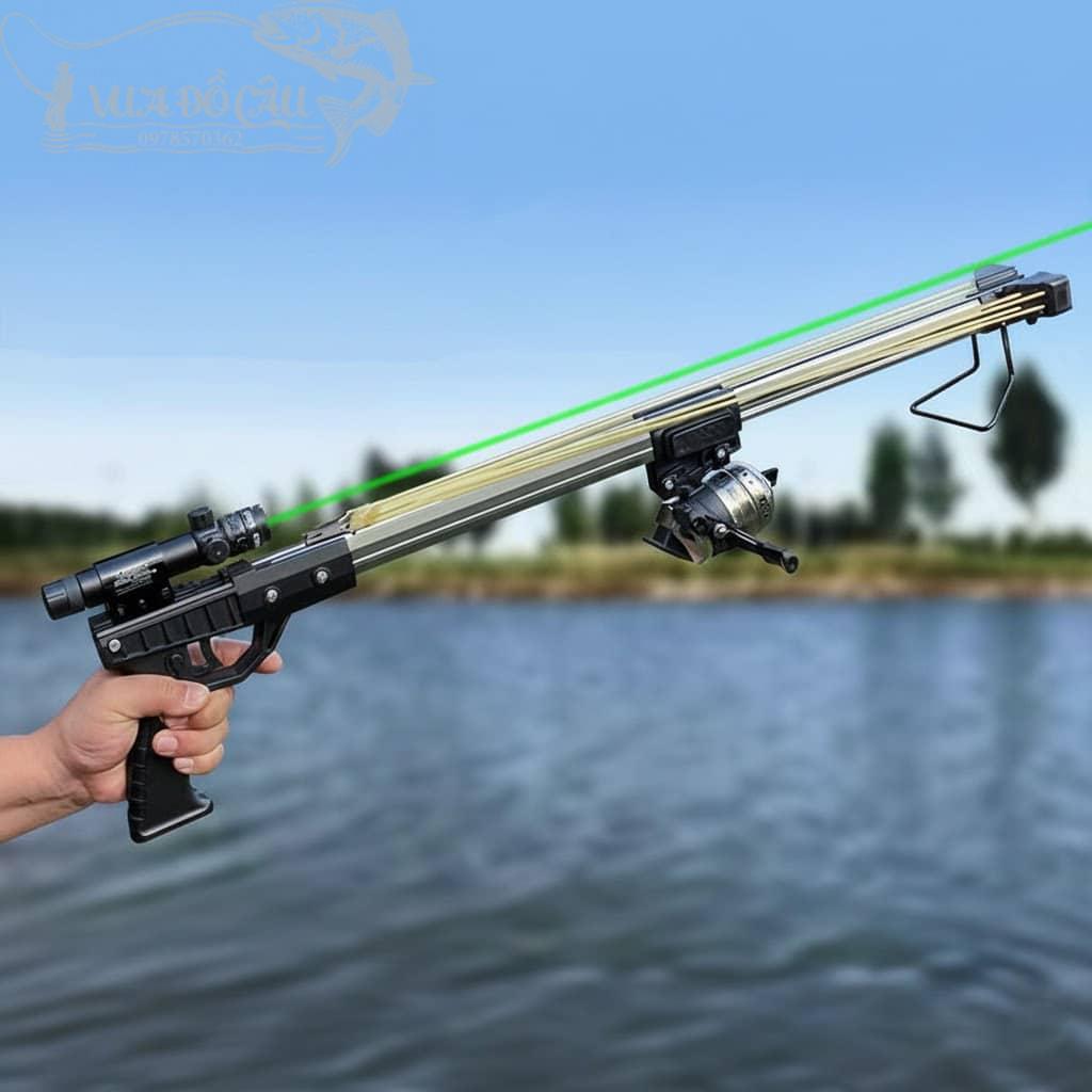 Ná bắn cá có gắn Laser hỗ trợ ngắm bắn giành cho anh em đam mê săn cá khủng cự li cực xa. Ná cao su bắn cá có tên và tay cuốn dây, lực bắn cực mạnh chuyên săn thuỷ quái.