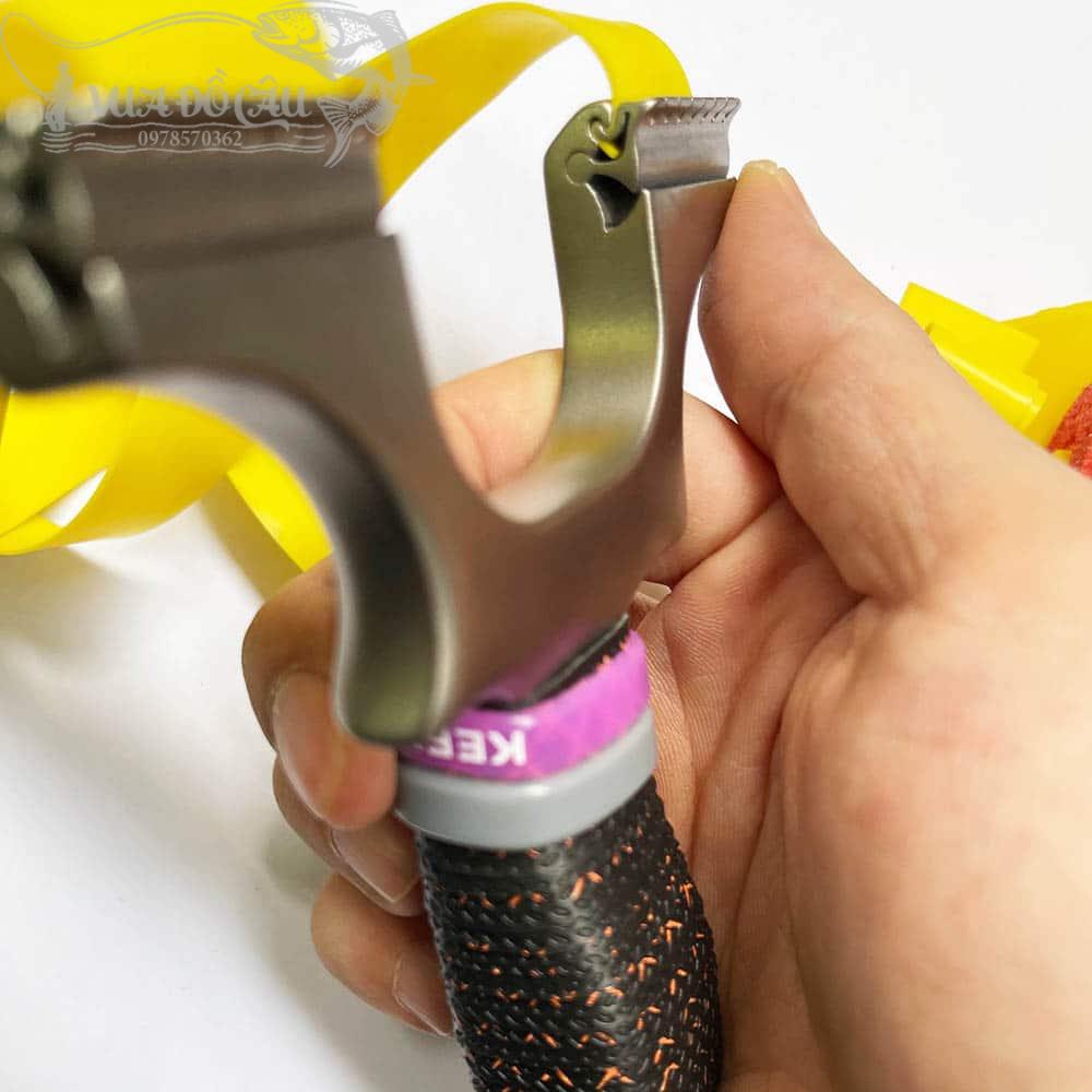 Thiết Kế Kẹp Nhanh “1 chạm”: Khác với các dòng ná truyền thống phải vặn vít mất thời gian, thiết kế kẹp răng rồng cho phép bạn thay dây chỉ trong vòng vài giây. Chỉ cần mở nhẹ, đặt dây và khóa lại – cực kỳ tiện lợi cho những buổi đi săn hay tập luyện liên tục.