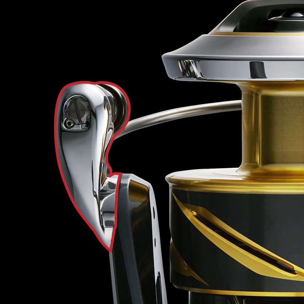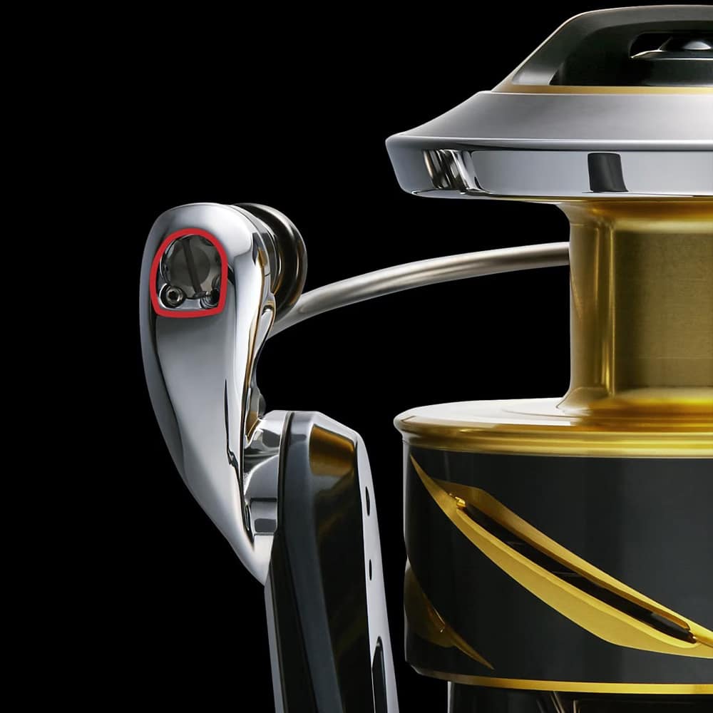 Được trang bị cam tay quay bằng kim loại, giống như rotor, để tăng độ cứng. Truyền tải sức mạnh của STELLA SW mà không bị biến dạng, chẳng hạn như khi quấn dây với tải trọng cao và khi chạy kéo. Bề mặt nhẵn mịn được duy trì trong thời gian dài nhờ lớp mạ kim loại. Điều này làm giảm hư hỏng cho dây.