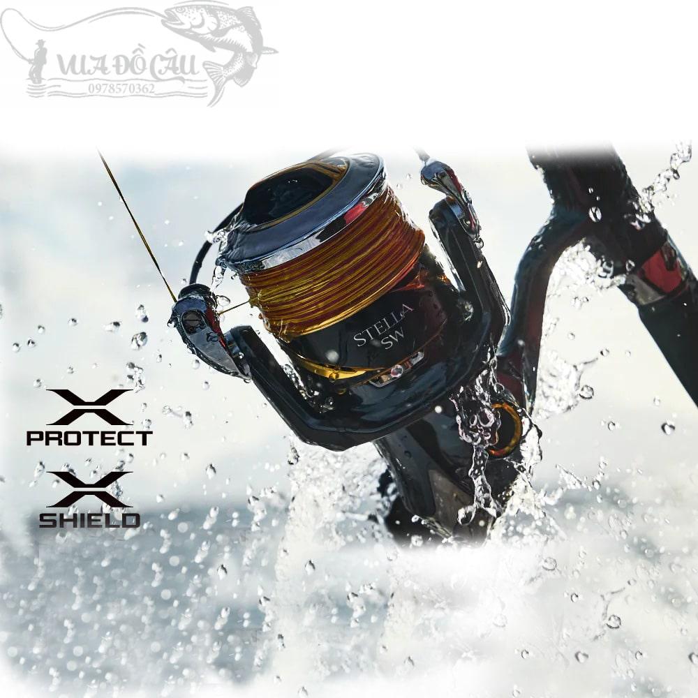 X PROTECT & X SHIELD: Mối đe dọa lớn nhất đối với máy câu cá SW là sự xâm nhập của nước biển. Nước biển xâm nhập vào bên trong máy sẽ ăn mòn các bộ phận kim loại và làm giảm đáng kể hiệu suất ban đầu. Máy câu Stella SW được bịt kín ở nhiều vị trí, bao gồm thân máy, núm hãm và con lăn dây, để ngăn nước xâm nhập. Đặc biệt, thân máy và bộ phận chặn đã đạt tiêu chuẩn chống nước IPX8. Điều này mang lại độ tin cậy và độ bền cao cho các trò chơi SW trong điều kiện khắc nghiệt. Ngoài ra, cấu trúc chống nước đã được cải tiến để mang lại hiệu suất quay nhẹ hơn mà vẫn duy trì hiệu suất chống nước. Điều này đạt được hai yếu tố trái ngược nhau là hiệu suất chống nước cao và khả năng quay mượt mà.