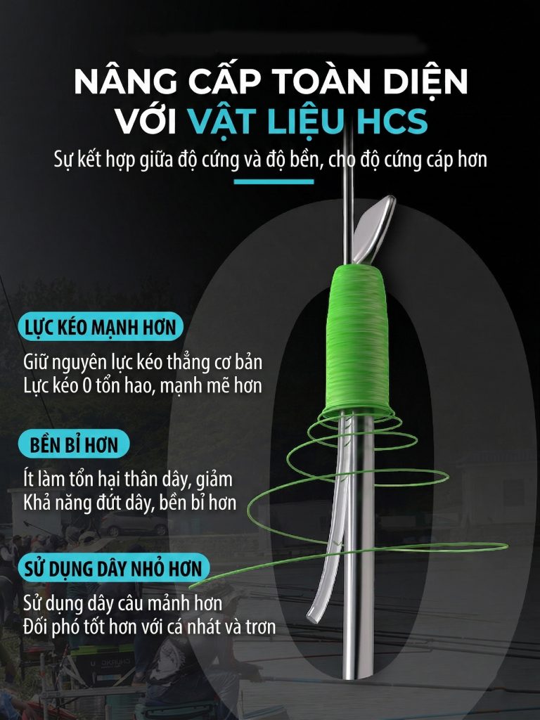 - Dây thẻo Nylon cao cấp: Sử dụng 100% dây Nylon chuyên dụng cho câu đài, đặc tính mềm mại, chống xoắn hiệu quả và khả năng cắt nước cực nhanh.