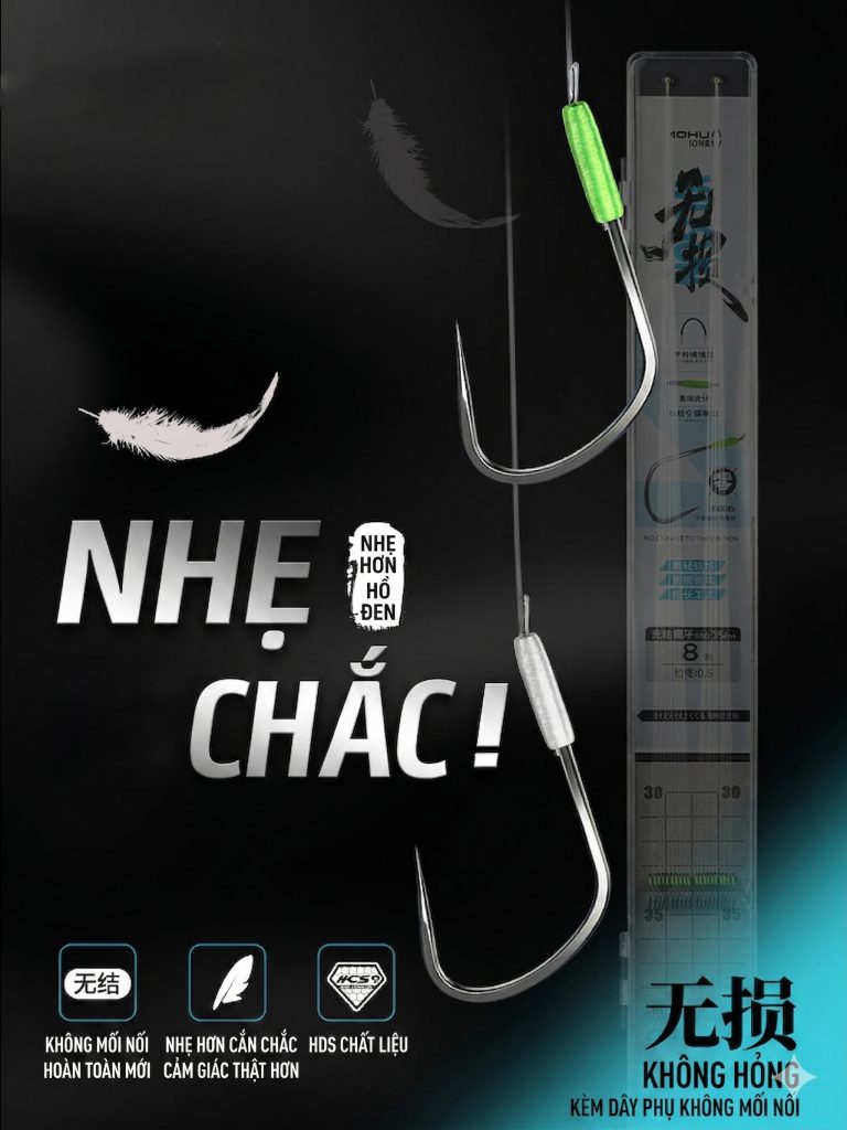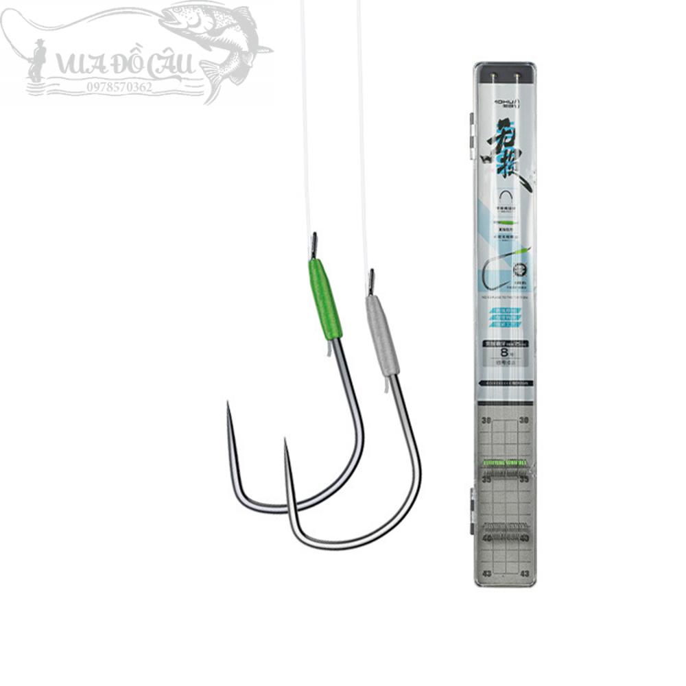 - Quy cách đóng gói: 1 vỉ gồm 10 bộ lưỡi đôi (tổng cộng 20 lưỡi), cực kỳ tiết kiệm và tiện lợi cho anh em đi câu dài ngày.